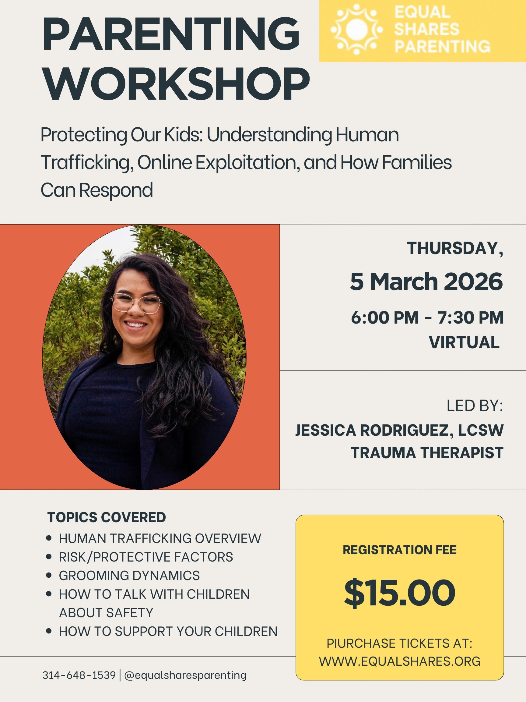 Join us for our upcoming Parenting & Caregiver workshop facilitated by Jessica Rodriguez, on Human Trafficking & Online Exploitation. Come learn, reflect, and connect with other caregivers in the community. March 5, 2026!